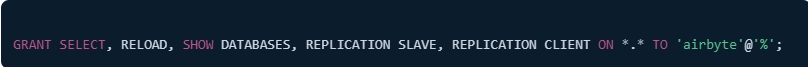 Although the database can be accessed with the root user, it is advisable to use a less privileged read-only user to read data. The user will be called airbyte and the password should be updated with a strong password of your choice.