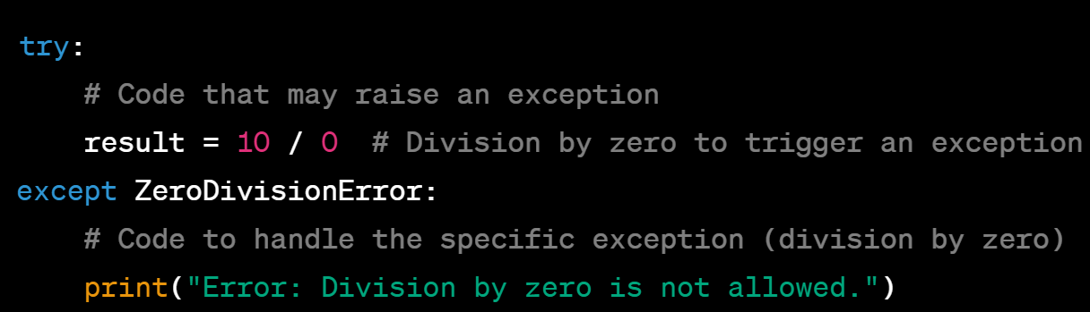Prompt: "Provide an example of how to use the try-except block in Python to handle exceptions."