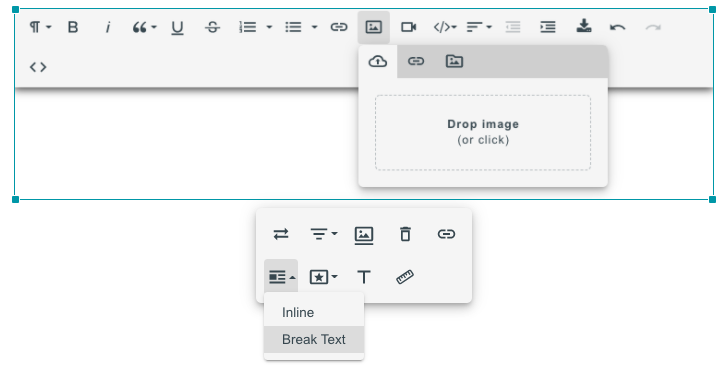 As for formatting, we generally have two guidelines. The first is that we like most images to be standalone, as in not in-line. That's not always true, but it often is. To do that, click on an image, then click on the far-left icon on the toolbar that pops up.