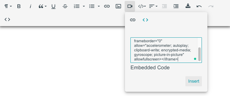 To put videos into articles, all you need is the embed code (or a YouTube URL). Open the Insert Video Tool, then choose how you want to import it (via embed code or YouTube URL). Paste the proper text into the proper box, and you're all set.