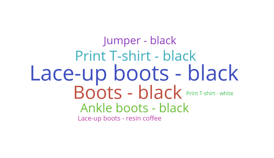 Insight is gleaned from Tag Clouds by font size and/or color. The bigger the font, the more common the instance. Kibana offers several metric aggregations to tweak the final visualization. Instances can have weight added to them based on other information attached to each entry.