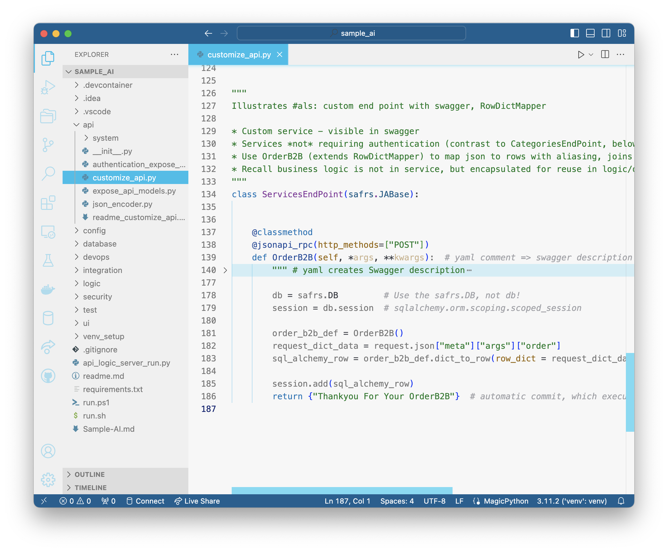 We can also extend our API for our new B2BOrder endpoint using standard Python and Flask: